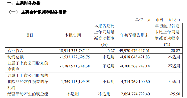 数据显示,天合光能前三季度实现营业收入499.7亿元,同比下滑20.87%;归属于上市公司股东的净利润为-42.01亿元。其中,第三季度实现营收189.14亿元,同比下降6.27%,净利润亏损12.83亿元。